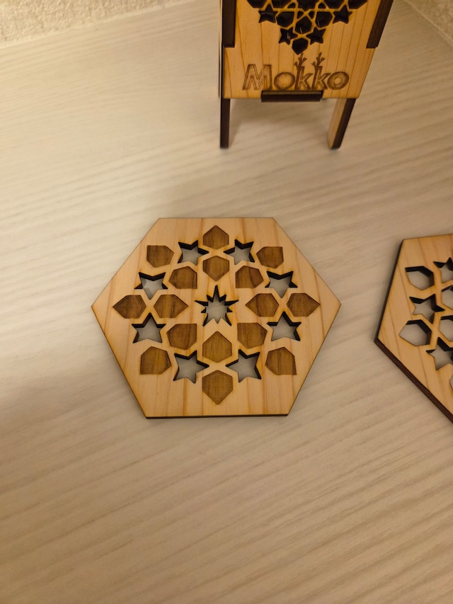 ● 天然ヒノキ使用 – 日本の伝統素材   以下のような優れた特性:   抗菌・防カビ性:自然の力で清潔さを保つ   吸水性・乾きやすさ:水滴をサッと吸収し、すぐに乾燥   耐久性・軽量性:長く使えて、扱いやすい ● 美しいカザフ文様デザイン   デザインには、中央アジア・カザフ民族に伝わる伝統文様(オルナメント)を採用。   中でも代表的なのが「コシュカルム(羊の角)」と呼ばれる形で、   これは豊かさ・生命力・幸福を象徴する縁起の良い文様です。   見た目の美しさだけでなく、意味あるアートとしてもお楽しみいただけます。 ● 使いやすいサイズ   直径:約90mm   厚さ:約4mm   マグカップからグラスまで幅広く対応。日常使いにもぴったりです。 ● 発送スタイルをお選びいただけます 1. 板付き発送   → 木製プレートに収めた状態でのお届け。ギフトにもおすすめです。 2. コースターのみ発送   → ご自宅用に。梱包材を減らした、エコでシンプルなスタイル。 天然素材と伝統の美を取り入れた、こだわりのコースターであります。 ナチュラルインテリアが好きな方や、贈り物を探している方にもぴったりのアイテムです。 毎日のコーヒータイムを、香りと共に豊かにしてみませんか?
